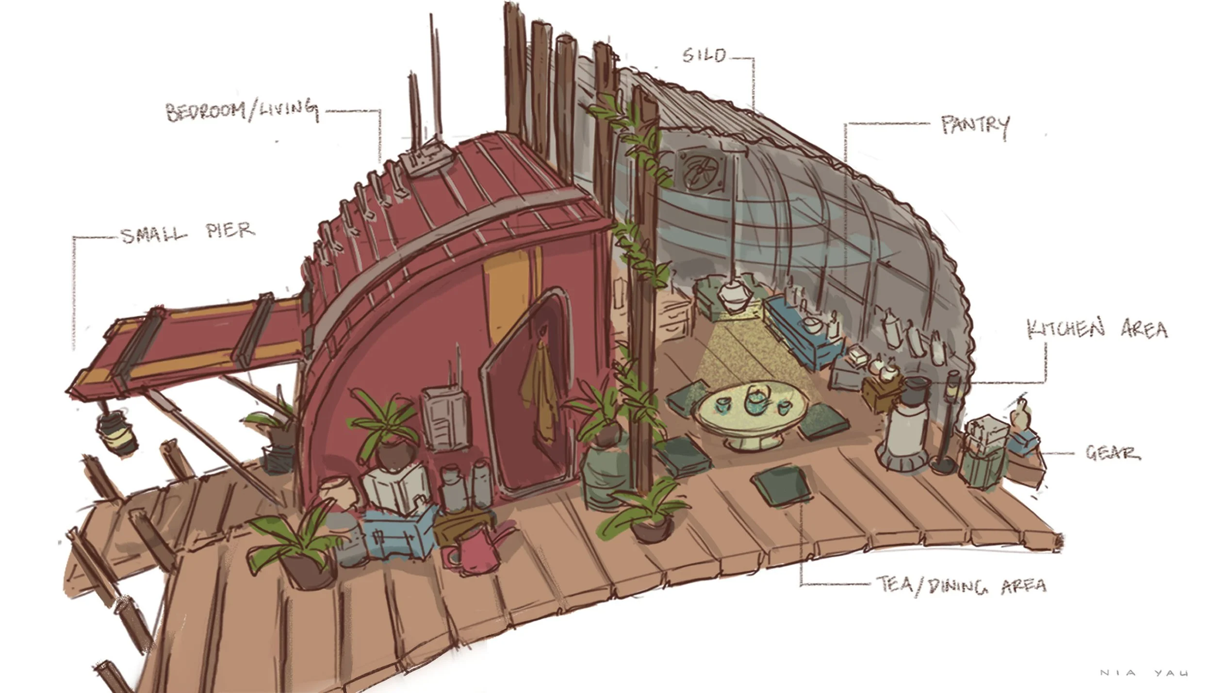 An exploration of what Mon Mothma’s dwelling might look like at the rebel base camp on Yavin 4. Inspired by Andor, I was drawn to the idea of recreating a sense of home in an unfamiliar place by blending nostalgic elements from one’s origins into a new environment. The form of the dwelling is constructed from repurposed silos found on Mina-Rau, echoing the resourcefulness of the Rebel Alliance.